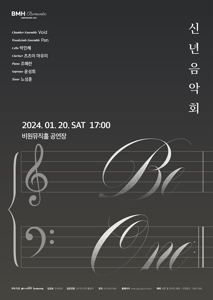대구시 서구 비원뮤직홀은 오는 1월 20일(토) 17시, 2024년을 시작하는 신년음악회 「Be One」을 개최한다.
