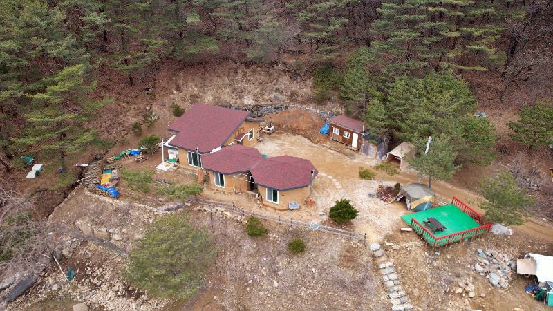 - 20년 전, 풍경에 반해 산 땅이 맹지라구요?! 맹지 위에 집 지을 뻔한 사연 공개! 여기가 무릉도원인가? 싶은 풍경은 기본. 노출 콘크리트가 아닌 노출 흙벽이 포인트인 직접 흙을 다져 지은 흙집을 소개