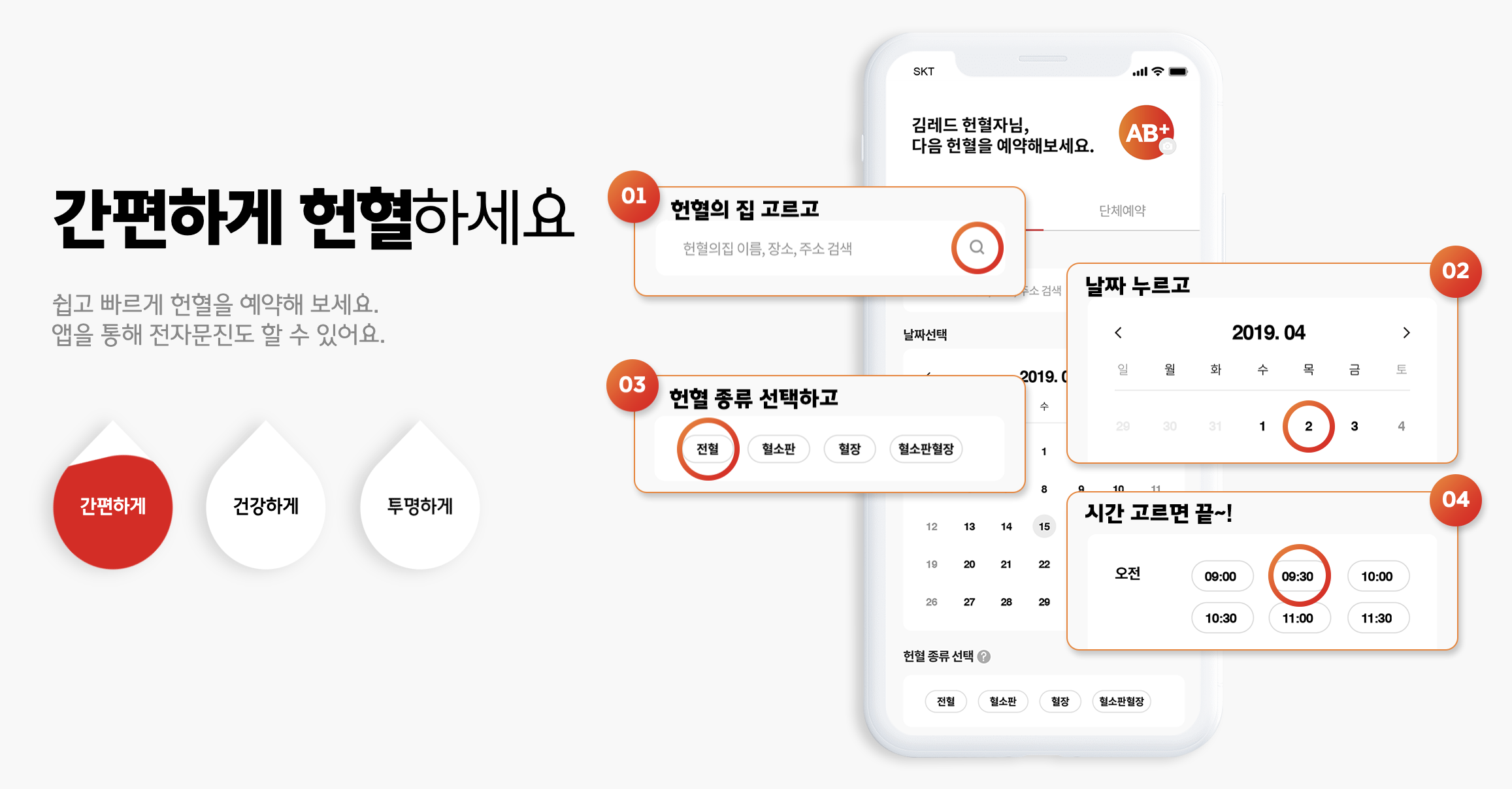 레드커넥트 앱을 통해 현 위치에서 가까운 헌혈의 집과 헌혈 버스 위치 확인, 전자문진, 헌혈의 집 예약 및 혈액 검사결가까지 확인할 수 있다.