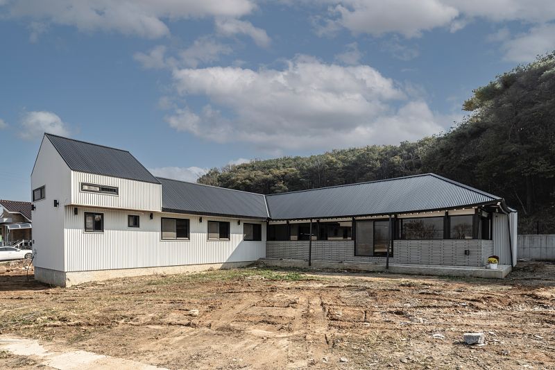 건축주가 집을 짓기로 결심한 건 5년 전. 부부 사진작가인 건축주는 함께 살고, 같이 작업할 공간이 필요했다. 그렇게 찾아온 곳이 바로 양평. 강이 보이는 풍경 좋은 땅을 구했지만, 전기·수도·진입로 등이 갖춰지지 않은 땅이라 토목공사 하는 데만 1,2년이 훌쩍 지나가버렸다. 집도 짓기 전에 10년 늙어버린 부부는 풍경을 포기하고 택지개발지구에서 두 번째 땅을 구매했다.
