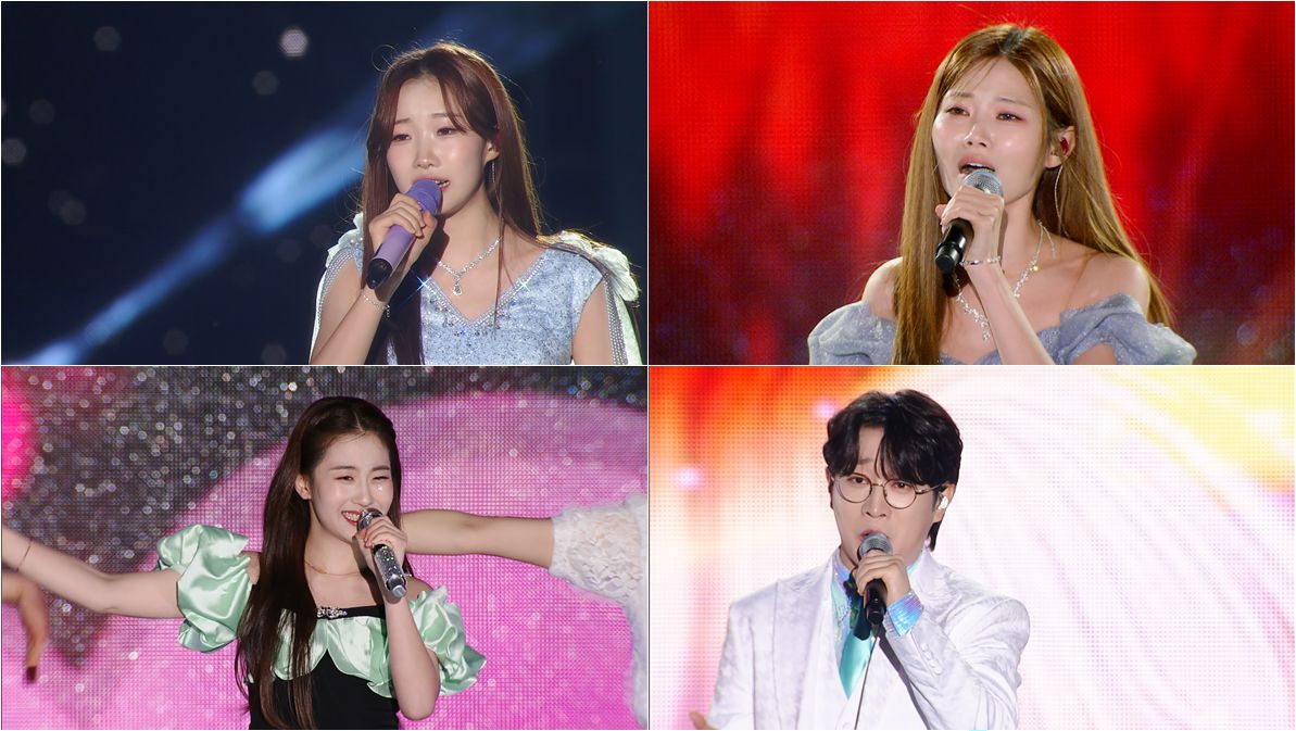 우선, 트로트 세대교체 바람을 일으킨 '미스트롯3' 진, 선, 미가 등장한다. 존재 자체가 장르, '첫눈 보이스'로 당당히 진을 차지한 역대 최연소 우승자 정서주는 '바람 바람아' 무대를 통해 감성 가득한 무대를 선보인다. 선에 등극한 배아현은 '100일'을 선곡해 '꺾기 인간문화재'만의 현란한 기교를 뽐내고, '미' 오유진은 '예쁘잖아'로 사랑스러움이 흘러넘치는 무대를 꾸며 눈길을 끌었다.
