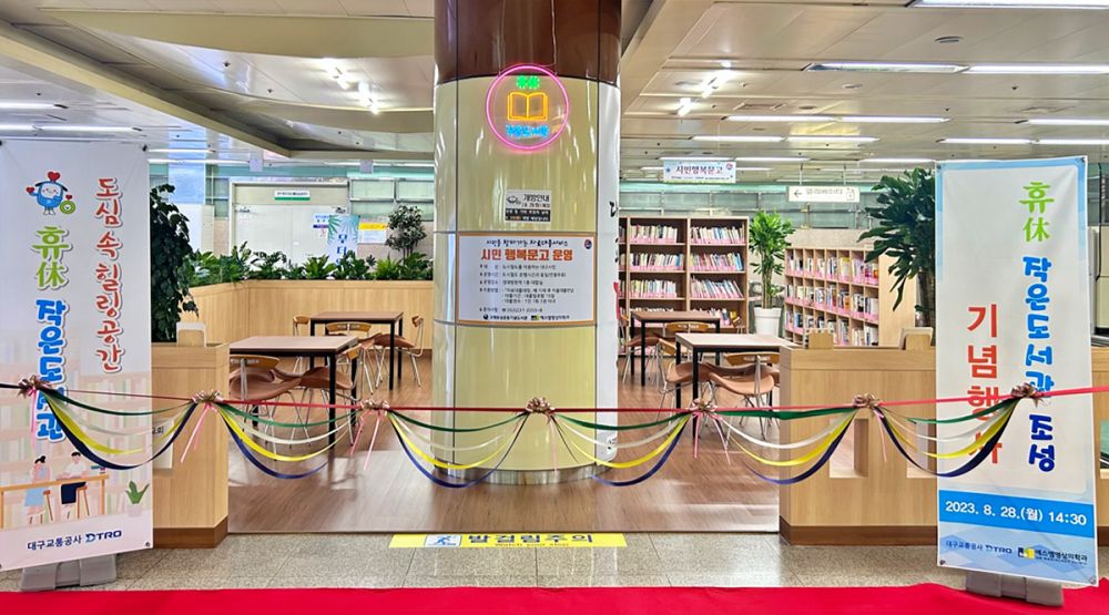 대구교통공사는 지난 28일(월) 2호선 경대병원역 대합실에서 SM영상의학과(대구시 중구) 관계자와 공사 직원 등 10여 명이 참석한 가운데「휴(休) 작은 도서관」 개관 기념행사를 가졌다.