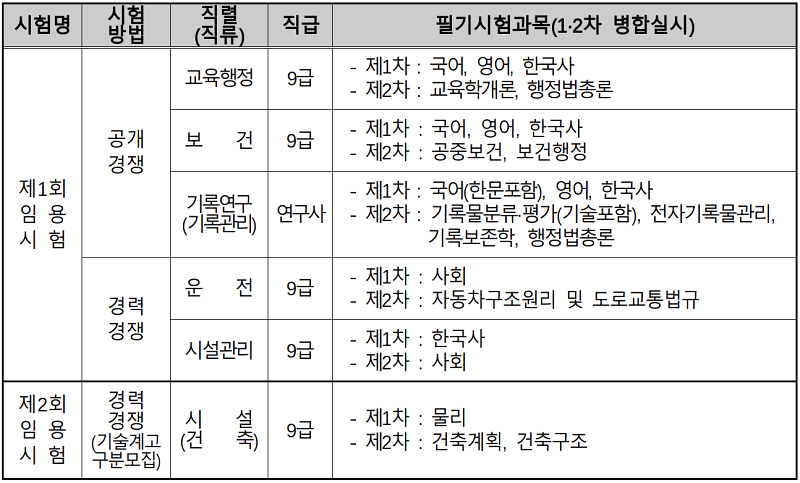 모집 구분별로는 △교육행정 147명 △교육행정(장애인) 18명 △교육행정(저소득층) 4명 △보건 4명 △기록연구 3명 △운전 13명 △운전(보훈청추천) 4명 △운전(봉화) 1명 △운전(울진) 1명 △시설관리 19명 △시설관리(보훈청추천) 5명 △기술계고 구분모집 시설(건축) 2명 등 총 221명을 선발한다.