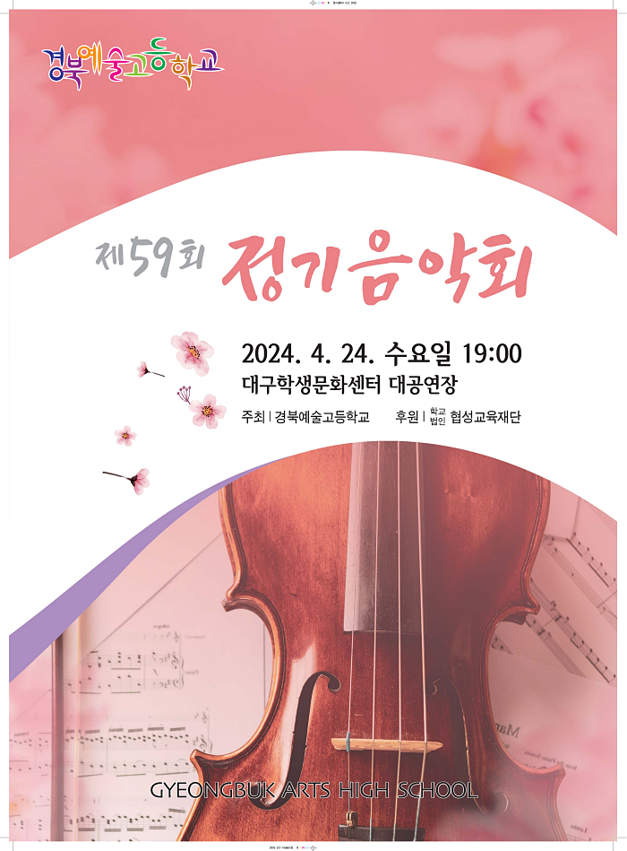 경북예술고등학교(이하 경북예고)는 오는 4월 24일(수) 오후 7시 대구학생문화센터 대공연장에서 ‘제59회 정기음악회’를 개최한다.