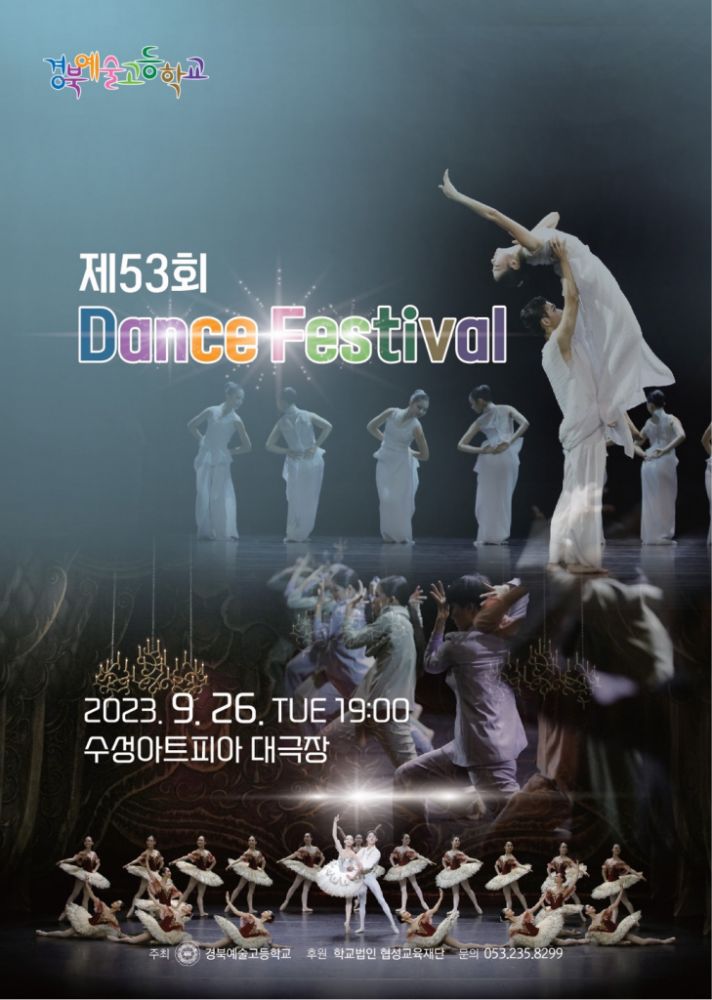 경북예술고등학교(대구 남구)는 2023년 9월 26일(화) 오후 7시, 대구 수성아트피아에서 정기 무용 발표회인 ‘제53회 Dance Festival’을 개최하여 한국무용·발레·현대무용이 어우러진 공연을 선보인다고 밝혔다.