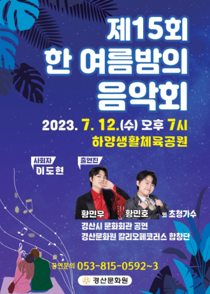 경산시가 더위와 장마에 지친 시민들을 달래줄 ‘제15회 한 여름밤의 음악회(이하 음악회)’를 오는 12일 하양생활체육공원에서 개최한다.