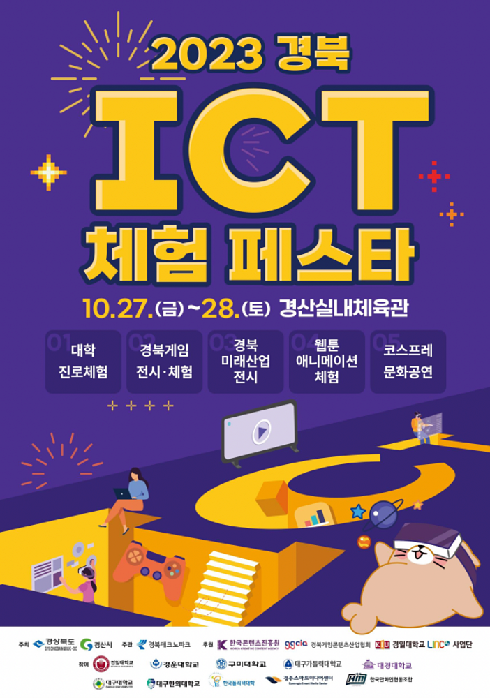 경산시는 10월 27일부터 10월 28일까지 이틀간 올바른 콘텐츠 문화 정착과 경북 ICT산업 활성화를 위한 「2023 경북 ICT 체험 페스타」행사를 경산실내체육관 주경기장에서 개최한다.