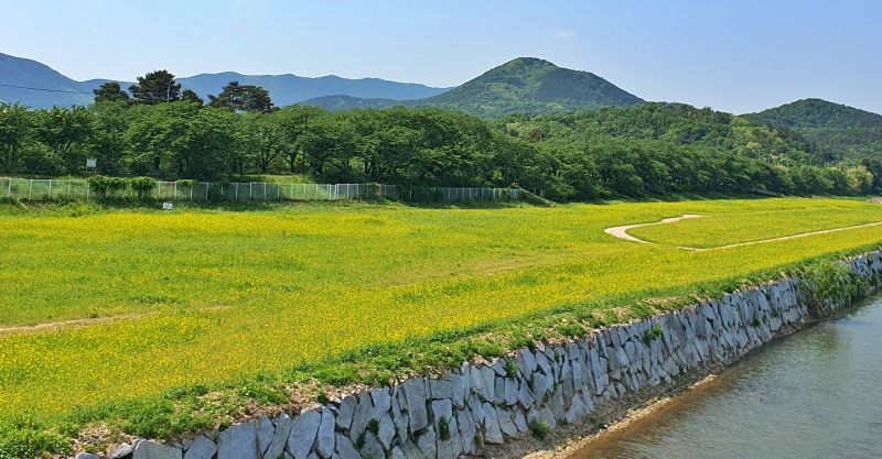 봄 파종으로 초록 잎과 꽃이 함께 피고 있는 유채꽃은 5월 중순에서 5월 말 사이 만개해 아름다운 하천경관을 연출해 줄 것으로 기대하고 있다.