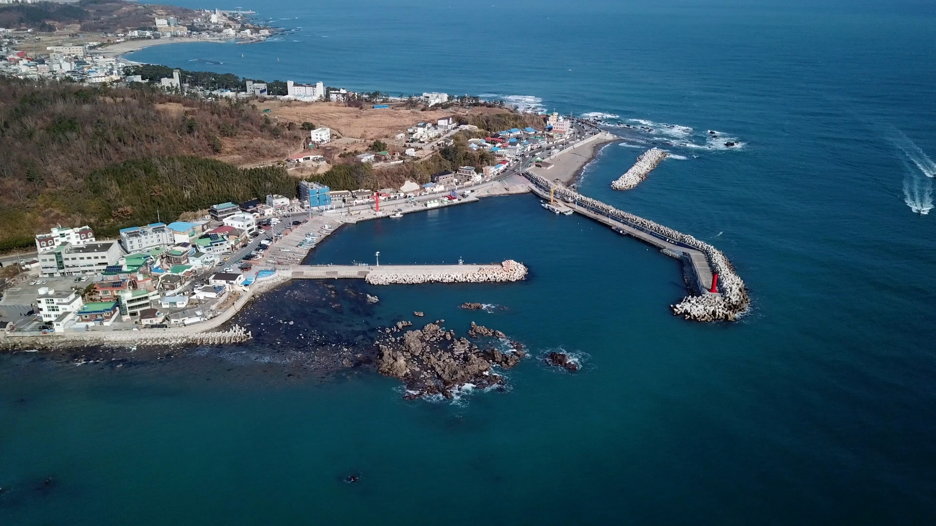 경북 경주시 양남면 수렴항. 2019년 해양수산부의 어촌뉴딜300 사업 대상지로 선정되며 월파방지시설과 재해예방시설을 비롯해 다목적광장, 수렴천 보행교, 해양레포츠체험장이 조성됐다.