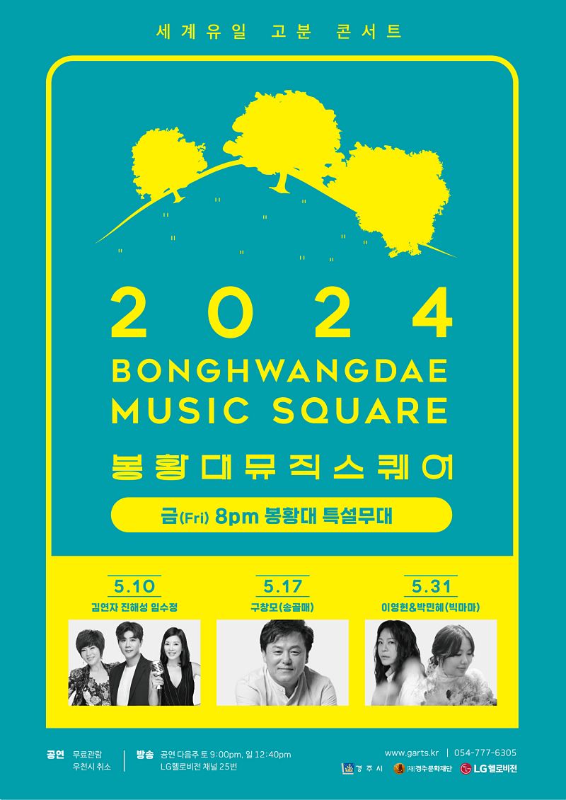 세계 유일 고분을 배경으로 열리는 콘서트 ‘2024 봉황대 뮤직스퀘어’가 10일 저녁 8시 봉황대 앞 광장 특설무대에서 개최된다.