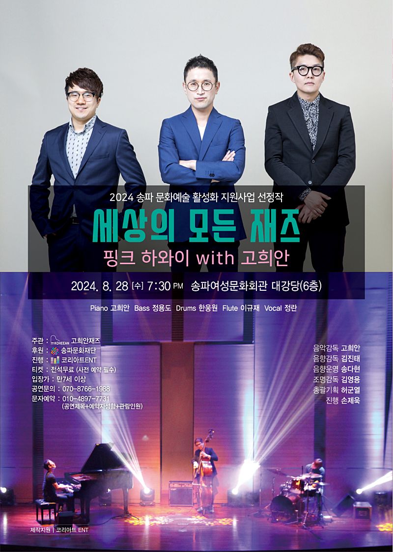 '고희안 재즈'가 오는 8월 28일, 송파여성문화회관 대강당에서 「세상의 모든 재즈 - 핑크 하와이」 프로그램을 송파구민들에게 선사한다.