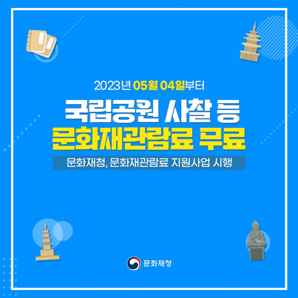 문화재청은 4일부터 무료로 전환되는 조계종 산하 사찰의 문화재 관람료를 지원하기로 하고, 이를 위해 5월 1일 오전 10시 30분 한국불교역사문화기념관(서울 종로구)에서 대한불교조계종과 업무협약(MOU)을 체결했다.