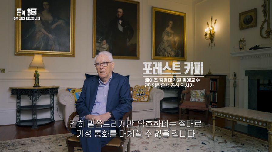 이날 방송에서는 전자화폐 발명가 데이비드 차움이 등장해 전자화폐 시스템의 탄생이 가진 의미를 살펴본다. 그는 중개 절차와 수수료가 발생하는 현재 거래시스템에 대해 “소득 수준이 낮을수록 많은 거래비용이 발생한다”며 “매우 착취적이고 국제사회 발전을 저해하는 해로운 구조”라 평했다고 해 눈길을 끈다.