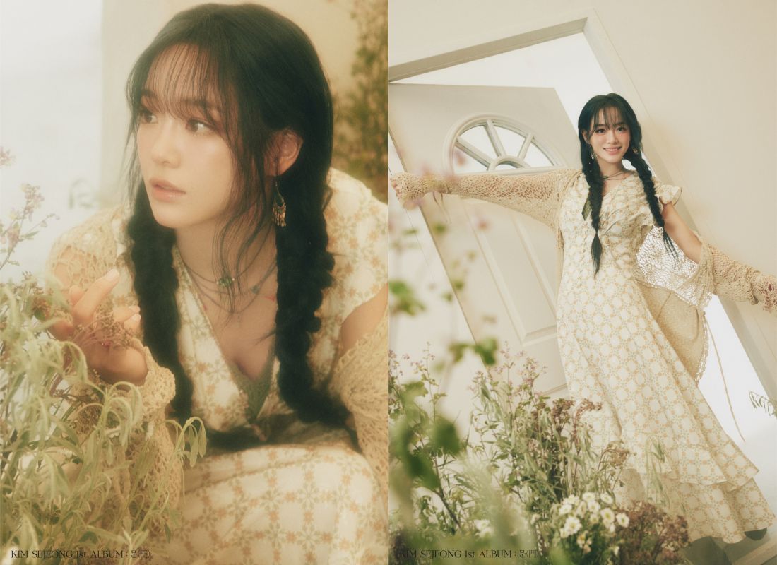 화이트의 블라우스 착장으로 해사하게 웃고 있는 김세정의 사진은 무의식 중에도 저장하게 만드는 감성적인 ‘심쿵짤’을 만들었으며, 양갈래로 머리를 딴 채 먼 곳을 응시하고 있는 김세정은 한 편의 멜로 영화 속 주인공을 연상케 하며 눈을 뗄 수 없게 만들었다. 살짝 열린 문 틈에 서있는 김세정의 사진은 보기만해도 꽃 향이 느껴지는 듯 청순한 분위기를 그려낸다.