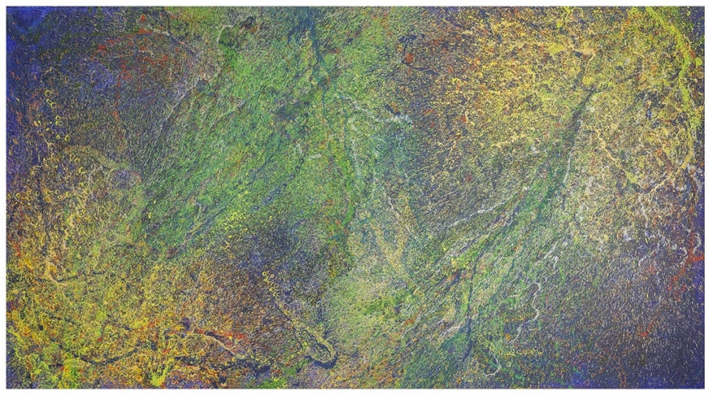 구리, 사금, 망간, 운모 등의 광물이 섞인 안료가 연출해 내는 신비로운 빛의 효과는 헤아릴 수 없는 별들로 채워진 무한의 우주 공간과 에너지로 소용돌이치는 북극의 오로라(Aurora)와 같다. 이렇듯 작가는 캔버스 위에서 물감이 자연스럽게 흩어지고, 흐르고, 다시금 씻기는 반복적인 일련의 행위를 통해 자연의 생명력과 우주의 근원적인 힘을 마주하고자 한다.