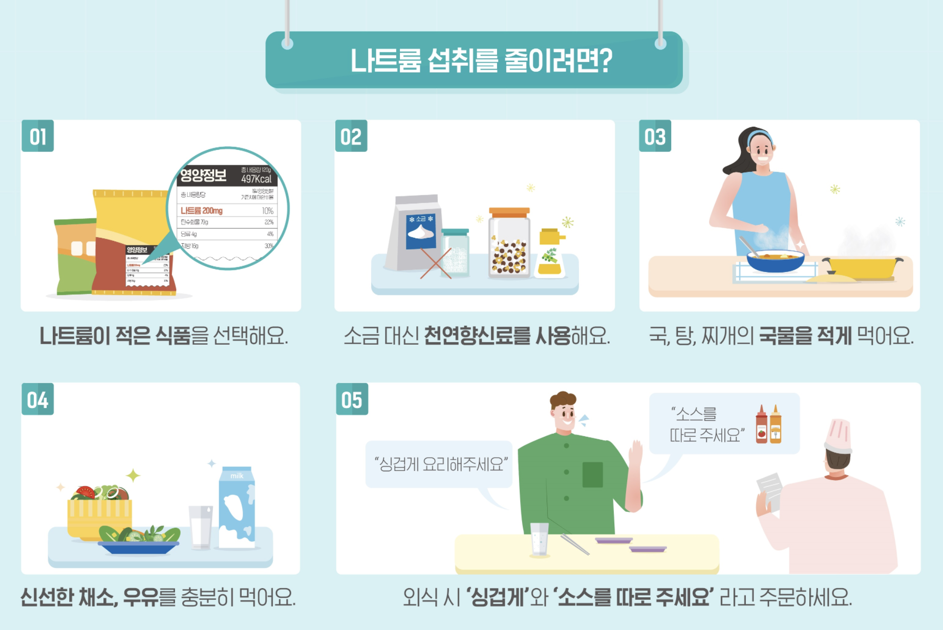생활 속 나트륨 섭취를 줄이는 5가지 방법
