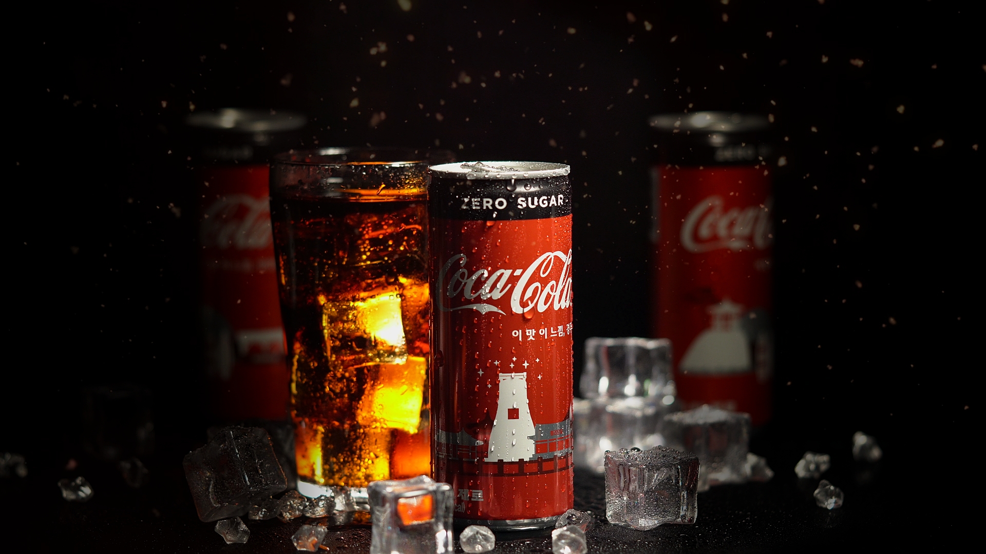 한때 해외 유튜브에서 유행했던 코카콜라 광고영상 만들기에 도전해봤다. 준비물은 간단하다. 탁자와 다이소에서 구한 검은색 시트지, 사각 얼음 모형 , 분무기, 미니 조명 그리고 가장 중요한 코카콜라 캔 몇개. 이게 전부다.