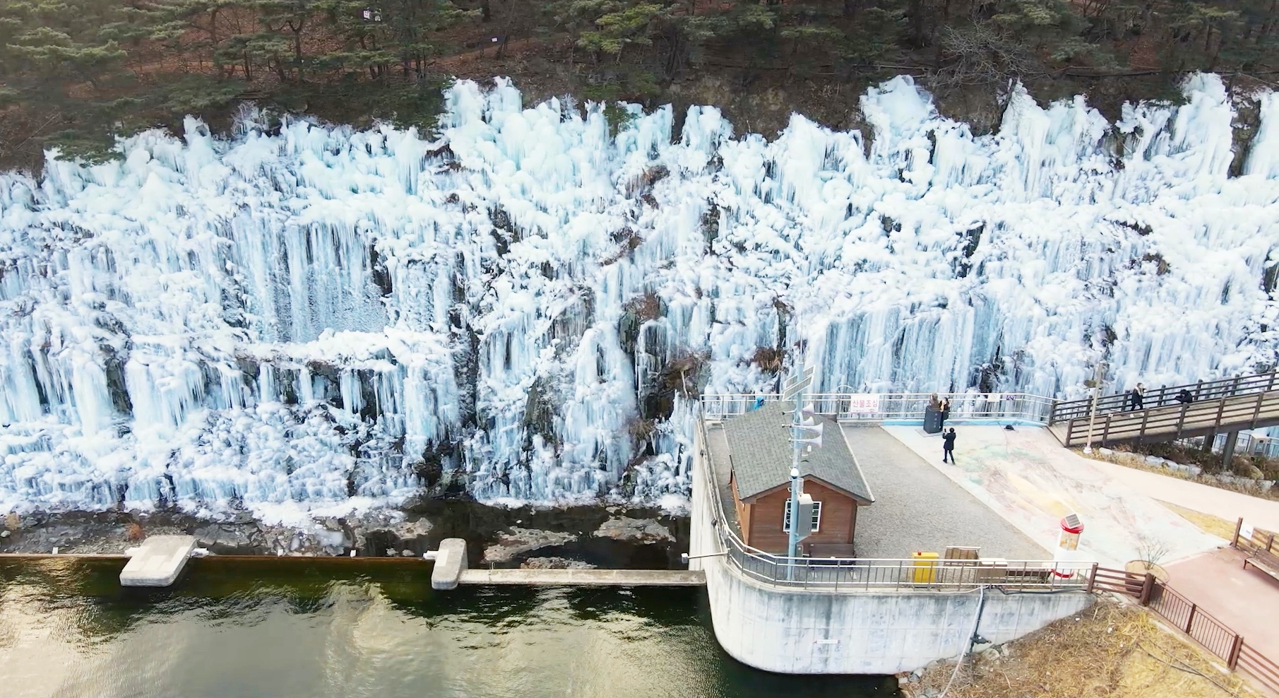 대구 달성군 옥연지 송해공원에 길이 200m, 높이 15m에 달하는 거대한 얼음절벽이 장관을 이루고 있다.