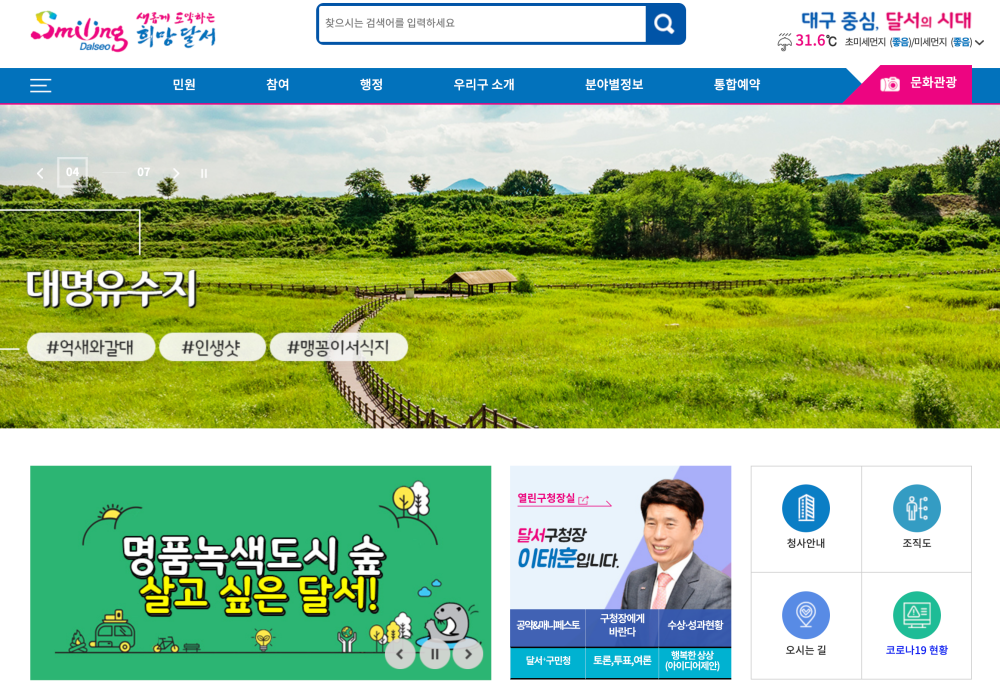달서구는 대구경북 기초지자체 최초 스마트 도시 인증, 대구 최초 그린시티 선정과 함께 「청년창업지원센터·청년센터」, 「달서선사관·청소년문화의집」, 「달서아이꿈센터」 등 맞춤형 거점시설을 개소했으며, 「희망나눔통합센터」, 「월배노인종합복지관」 건립 등 주민의 행복한 일상을 지원하기 위해 노력중이다.