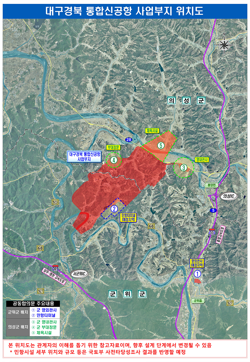 을사년(乙巳年) 1월 TK신공항 건설의 가장 핵심인 군 공항 이전의 사업계획이 승인됨에 따라 ‘이주단지 조성 타당성 조사 및 기본구상 용역’, ‘신공항 건설을 위한 환경영향평가 용역’ 등을 본격적으로 추진할 예정이다.