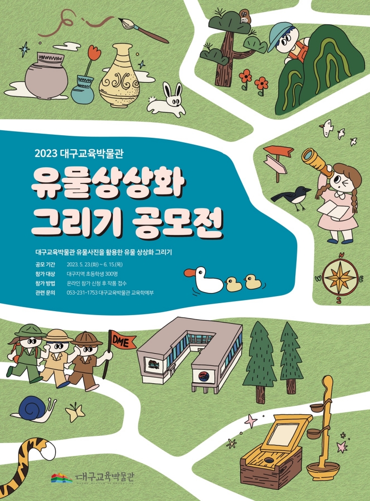 대구교육박물관은 2023. 유물상상화 그리기 공모전을 개최하고, 5월 23일(화)부터 6월 15일(목)까지 온라인 참가 신청 및 그림 작품을 접수한다.