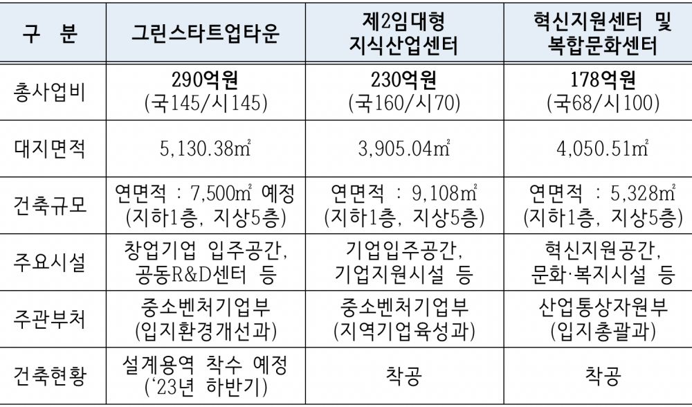 제2임대형지식산업센터와 혁신지원센터 및 복합문화센터는 올해 초 공사를 착수해 터 고르기 공사가 진행 중이며 2024년 하반기 준공할 예정이다.