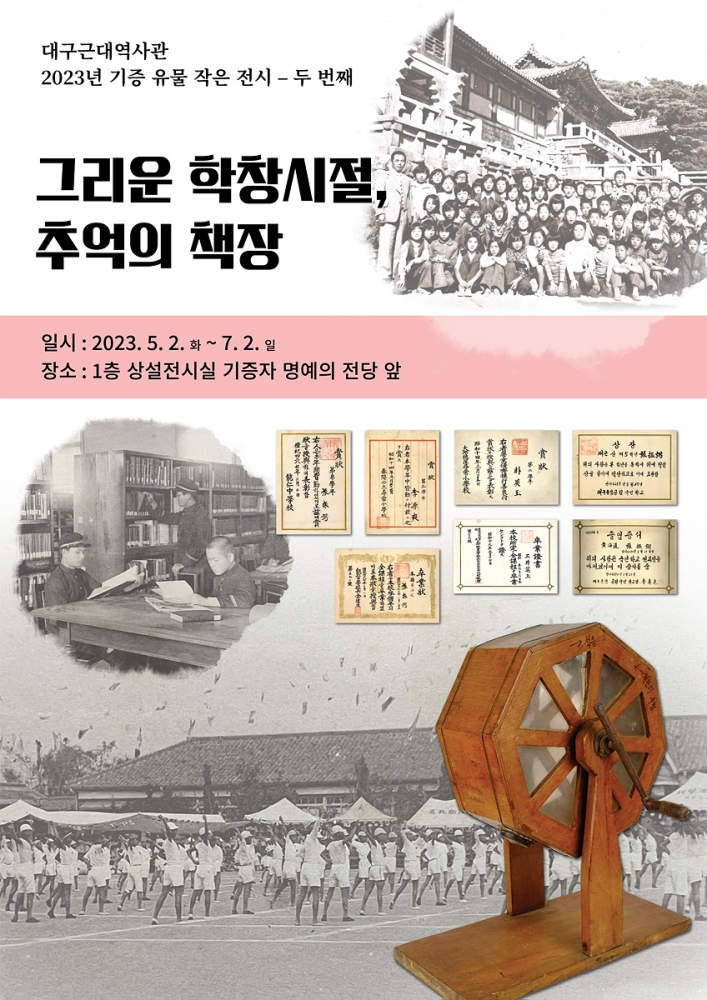 (재)대구문화예술진흥원(원장 김정길) 박물관운영본부 소속 대구근대역사관은 5월 2일(화)부터 7월 2일(일)까지 1층 전시실 ‘명예의 전당’ 앞에서 ‘그리운 학창시절, 추억의 책장’ 기증유물 작은 전시를 개최한다.