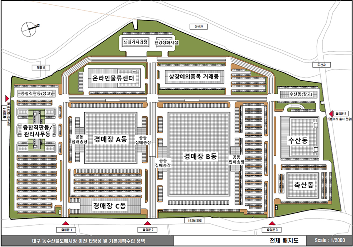 이전지 도매시장은 시설 및 공간 확대를 통해 기존 처리 물량 한계를 극복하고, 최적 동선 설계, IT 기반 물류, 공동물류 시스템 등 획기적 물류개선, 첨단 유통 시스템 구축, 이용자 서비스 시설 확충으로 새롭게 거듭날 것으로 보인다.
