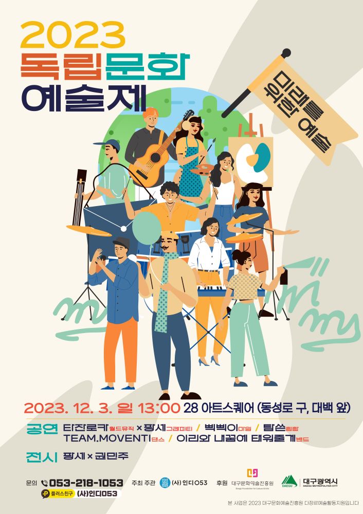 ‘2023 대구독립문화예술제’는 (사)인디053(대표 이창원)이 주최·주관하고 대구문화재단이 후원하는 사업으로, 인디 · 자립예술 · 서브컬쳐 등의 이름으로 불리는 지역 독립문화 예술을 한눈에 볼 수 있는 축제다.