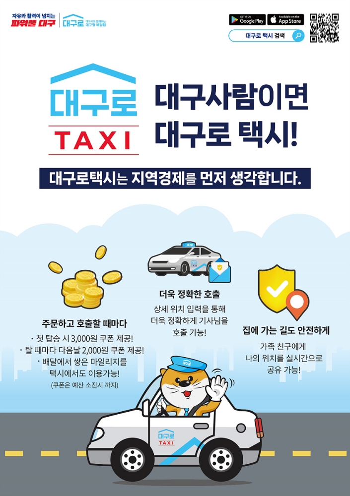 한편, 지역 자본의 역외 유출 방지와 시민들에게 저렴하고 안전한 택시 이용 서비스를 제공하는 대구형 토종택시앱 ‘대구로택시’가 출범 65일 만에 폭발적인 성과를 거두고 있다.