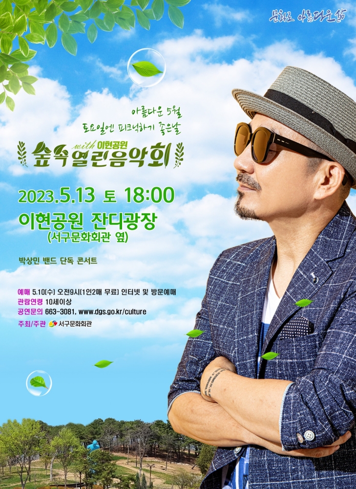 서구문화회관은 오는 13일과, 20일 오후 6시 서구의 랜드마크 이현공원에서 숲속열린음악회 with 이현공원 공연을 개최한다.