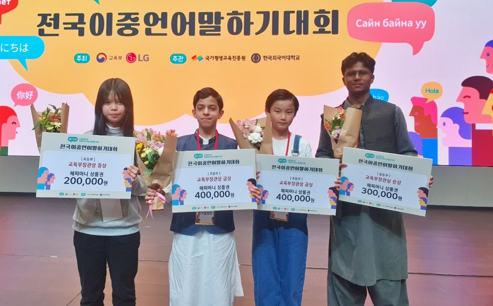 대구시교육청은 지난 11월 18일(토) 서울LG사이언스파크ISC센터에서 열린 제11회 전국이중언어말하기대회에 대구대표로 관내 학생 4명이 참가하여 참가자 전원이 교육부장관상을 수상했다고 20일(월) 밝혔다.