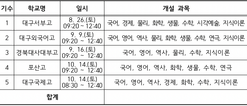 대구시교육청은 8월 26일(토)부터 10월 14일(토)까지 관내 중3학생 323명을 대상으로 국제 바칼로레아(IB)의 고등학교 과정인 디플로마 프로그램(DP) 수업 체험 기회를 제공하기 위해 ‘IB 탐구기반학습 학생프로그램’을 운영한다.