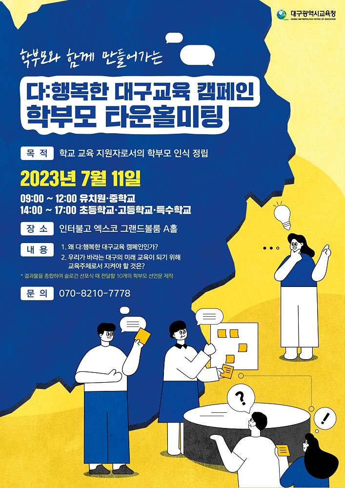 타운홀미팅에 참석한 학부모들은 향후 시민 등을 대상으로 하는 다:행복한 대구교육캠페인의 홍보대사이자 학부모 리더로서의 역할을 하게 된다.