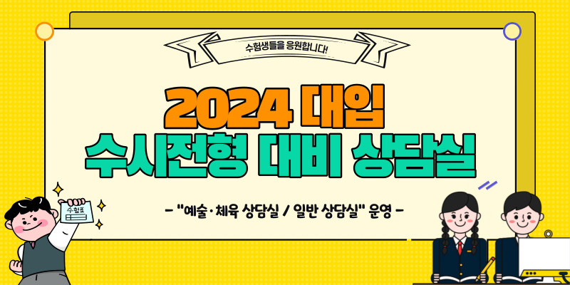 이번 대입 수시전형 대비 집중 상담실은 ▲일반 상담과 ▲예술ㆍ체육 상담으로 나눠 운영되며, 대구 진학전문교사들이 상담위원으로 참여한다.
