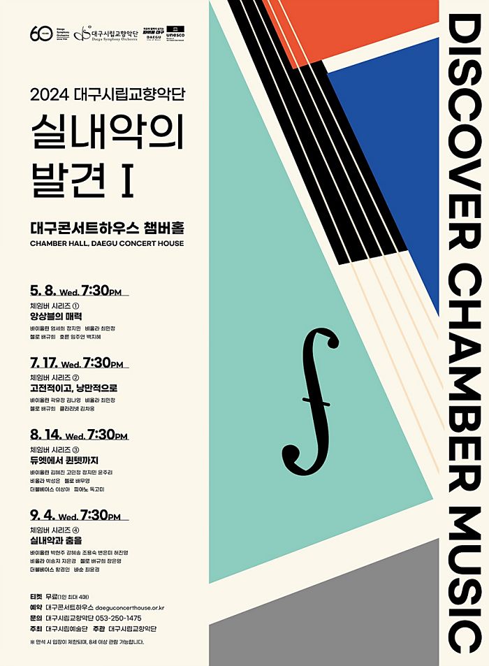 한편, 대구시향 ‘실내악의 발견Ⅰ’의 다음 체임버 시리즈는 오는 7월 17일(수), 8월 14일(수), 9월 4일(수) 오후 7시 30분 대구콘서트하우스 챔버홀에서 각각 개최되며, ‘실내악의 발견Ⅱ’는 10월과 11월에 총 4회 있을 예정이다.