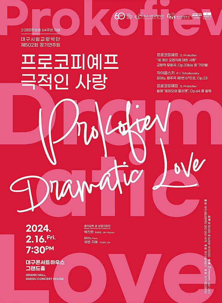 백진현 상임지휘자는 “고전적이지만 혁신적인 프로코피예프의 두 작품은 ‘사랑’의 다양한 모습을 보여주는 동시에 작품의 성격상 희극과 비극으로 대비되기도 한다. 특히 이뤄질 수 없는 사랑의 대명사 ‘로미오와 줄리엣’은 줄거리를 떠올리며 들어보면 감상의 즐거움이 배가 될 것이다. 그리고 중국에서 가장 촉망받는 피아니스트 중 한 사람인 위엔 지에와의 협연도 기대되며, 앞으로도 대구시향은 국내외 뛰어난 신진 연주자, 콩쿠르 수상자 등과 함께하는 수준 높은 무대를 이어나갈 계획이다.”라고 말했다.