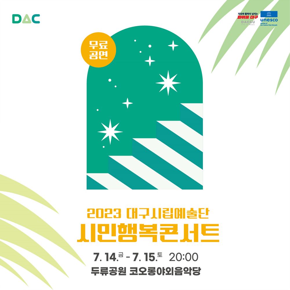 대구문화예술회관 소속의 시립예술단 4개 단체가 함께하는 ‘시민행복콘서트’가 오는 14일(금)과 15일(토) 양일 간 코오롱 야외음악당에서 개최된다.
