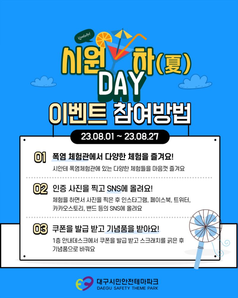 대구시민안전테마파크는 폭염대응 체험 콘텐츠를 활용해 ‘시원하(夏)데이(Day)’ 이벤트를 펼친다고 밝혔다.