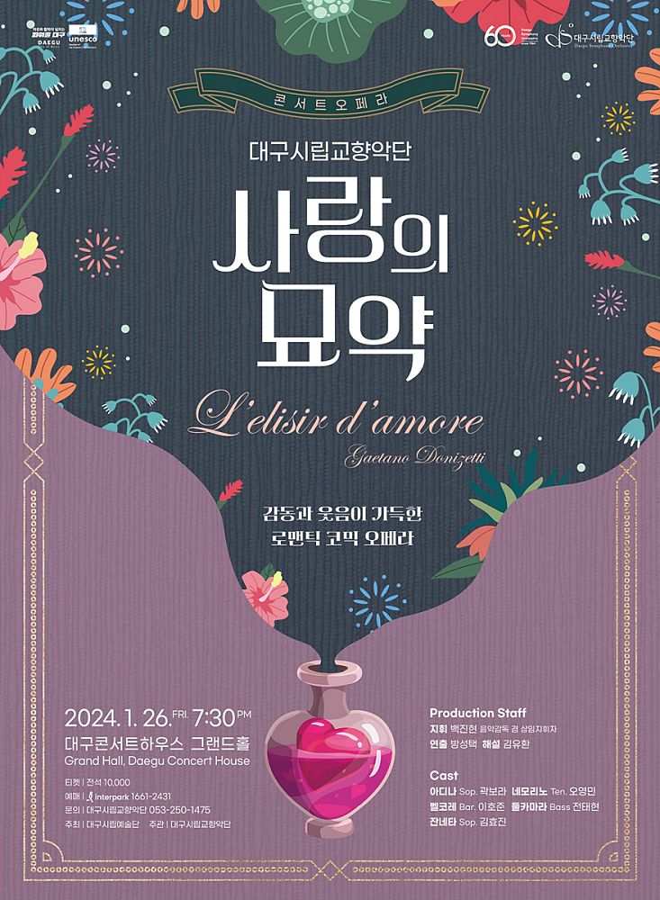 대구시립교향악단(이하 대구시향)이 2024년 시작을 웃음과 감동으로 물들일 콘서트 오페라 ‘사랑의 묘약’을 선보인다.