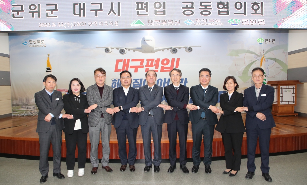 2023년 7월 1일 자 군위군의 대구 편입과 관련해 대구시는 2월 22일(수) 오후 2시 군위군청에서 대구시 김종한 행정부시장과 경북도 김학홍 행정부지사, 군위군 이상현 부군수가 참석한 가운데 군위군 대구시 편입 공동협의회 첫 회의를 개최했다.