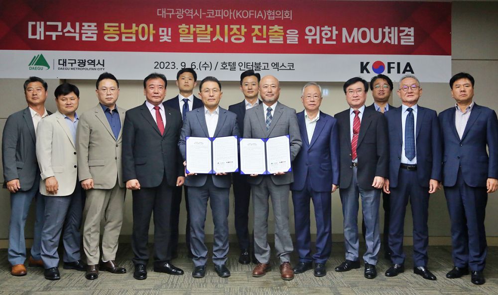 대구광역시는 9월 6일(수) 오후 7시 호텔 인터불고 엑스코에서 코피아(KOFIA) 협의회와 대구 식품의 동남아, 할랄시장 진출을 위한 상호협력을 내용으로 MOU를 체결한다.