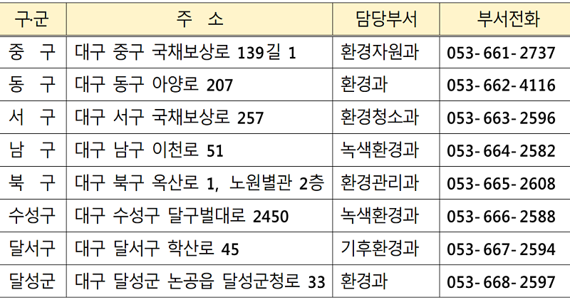 자세한 사항은 구·군 홈페이지 공고를 통해 확인하거나 구·군 환경부서로 문의하면 안내받을 수 있다.