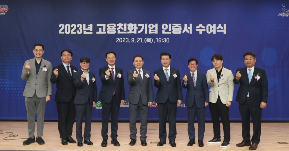 대구광역시는 고용 창출 실적이 뛰어나고 근무환경이 우수한 지역 대표 일자리 ‘고용친화기업’ 신규 3개사, 재인증 34개사를 선정해, 9월 21일(목) ‘2023년 고용친화기업 인증서 수여식’을 개최했다.