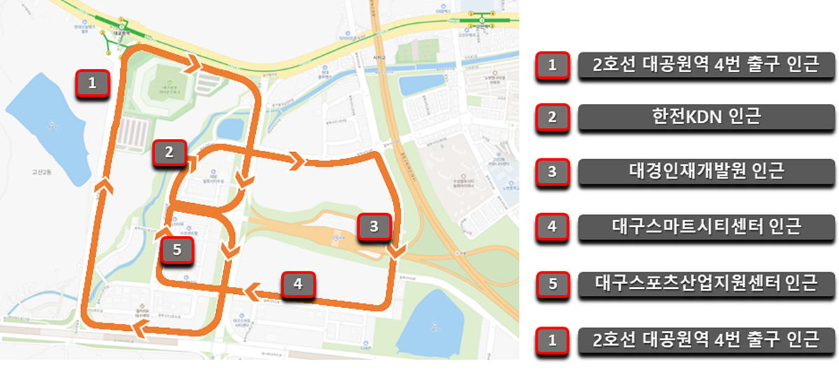 대공원역~수성 알파시티 내부~대공원역으로 이어지는 약 6km 구간에서 서비스를 제공하며, 향후 대공원역을 기점으로 대구미술관, 대구스타디움 등 지역 내 주요 관광지를 잇는 노선을 확대해 일상 속에서 활용할 수 있는 이동 서비스로 자리매김할 방침이다.