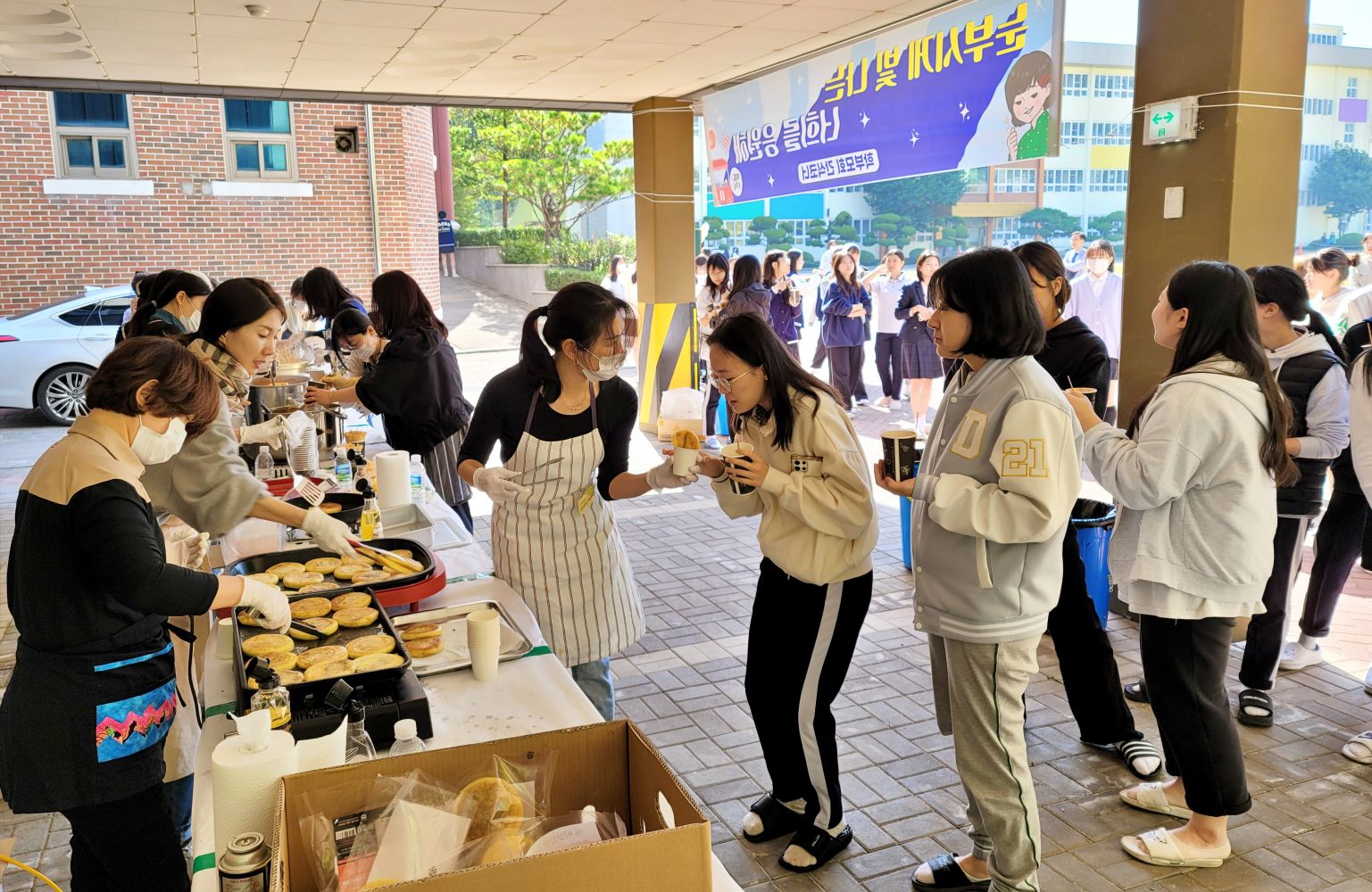2학년 정수빈 학생은 “학교 축제를 통해 학업스트레스를 한 방에 날려 버릴 수 있어 좋은데, 어머니들께서 우리들을 위해 정성어린 간식을 만들어주셔서 마음도 따뜻해졌다. 항상 우리를 응원해주시고 힘써주시는 부모님들께 너무 감사하다.”고 말했다.