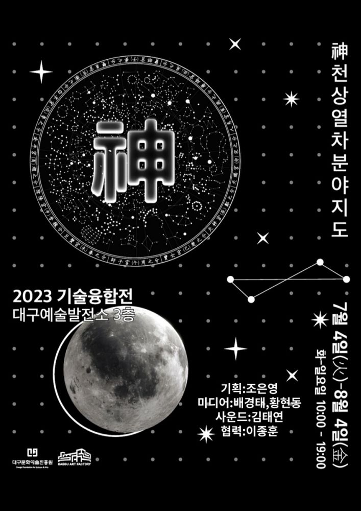 (재)대구문화예술진흥원 대구예술발전소에서 2023년도 기술융합 전시 2부 〈神)천상열차분야지도〉와 〈마:音 우주정거장〉을 오는 7월 4일(화)부터 9월 8일(금)까지 대구예술발전소 3층 미디어공간에서 개최한다.