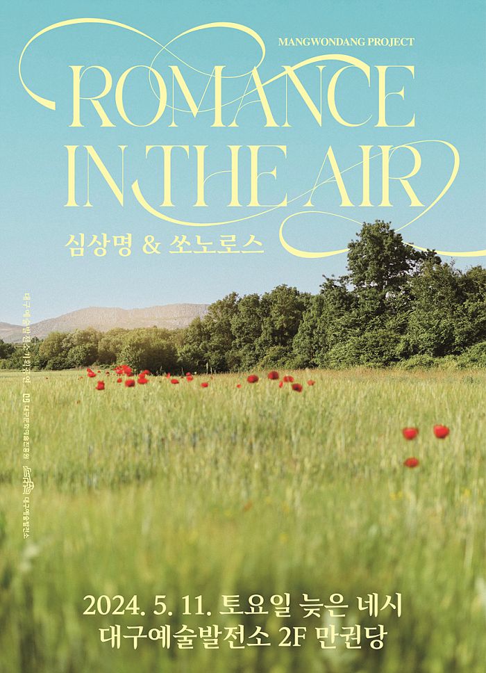 (재)대구문화예술진흥원 대구예술발전소는 봄의 절정을 맞이해 2024년 첫 기획공연 ‘Romance Is in the Air’를 오는 5월 11일(토) 대구예술발전소 만권당에서 개최한다.