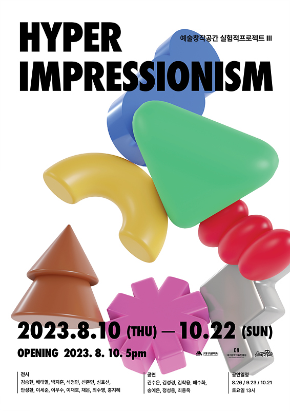 대구예술발전소에서 2023년도 실험적 프로젝트Ⅲ ‘HYPER IMPRESSIONISM’을 8월 10일(목)부터 10월 22일(일)까지 개최한다.
