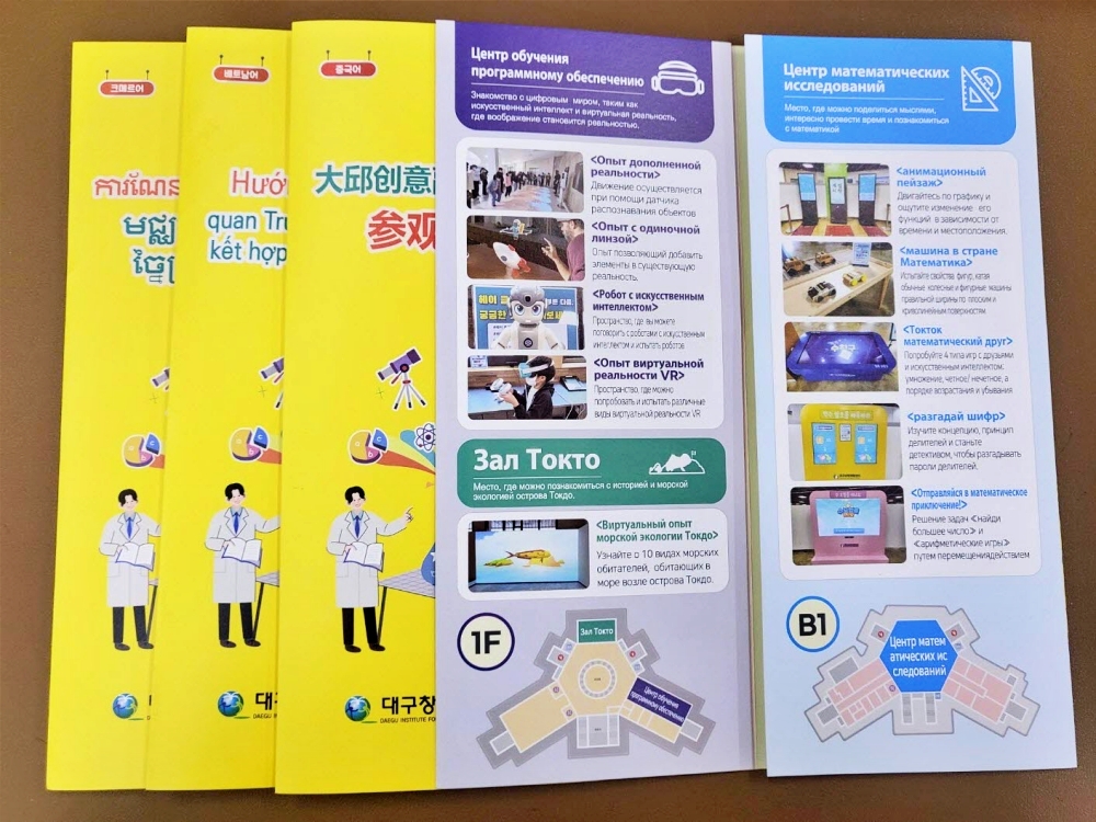 대구창의융합교육원은 5월부터 다국어 리플렛(4종)을 제작하여 한국어 소통이 어려운 다문화가정 학생 및 가족, 외국인 관람객의 전시체험관 참여 기회를 확대하고 맞춤형 관람서비스를 제공한다고 밝혔다.